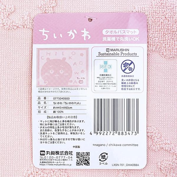 ちいかわが鎧さんにもらったくまのポシェットが大きく刺繍されたタオルバスマットです。洗濯機で丸洗いOKなので衛生的にも◎抗菌防臭加工済みなので、嫌な臭いを防ぎ、繊維上の細菌の増殖を抑制してくれます!可愛いバスマットで毎日のお風呂も幸せな気分になりそうです♪