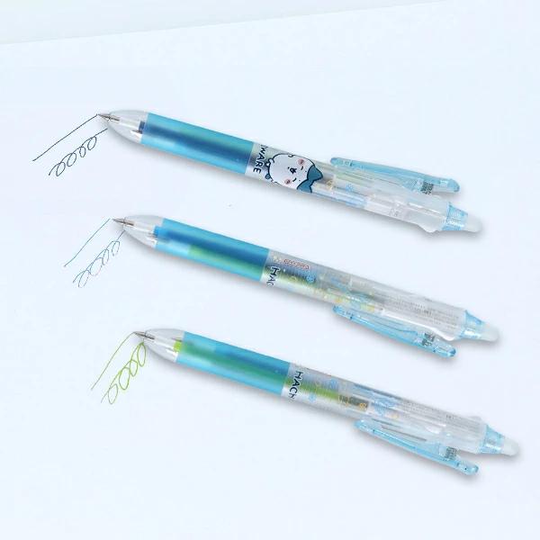 ハチワレのフリクションボールペンペンです。3色あって勉強やお仕事などで大活躍すること間違いなし!すりガラス風デザインでおしゃれかつ中のリフィルの色が見えて使い勝手も◎キャラクターによって色が異なるのでぜひお好きなキャラクターやお色でお選びください☆彡【カラー】ブルーブラック、スカイブルー、ライトグリーン、【替え芯:LFBTRF】、【ボール径:0.38mm】