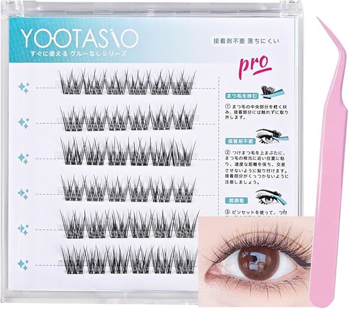 「柔軟な透明軸つけまつげ束感」YOOTASIOこのつけまつげは、アイドルグループのステージメイクからインスパイアされ、繊細な繊維とボリューム感で自然な束感を実現します。