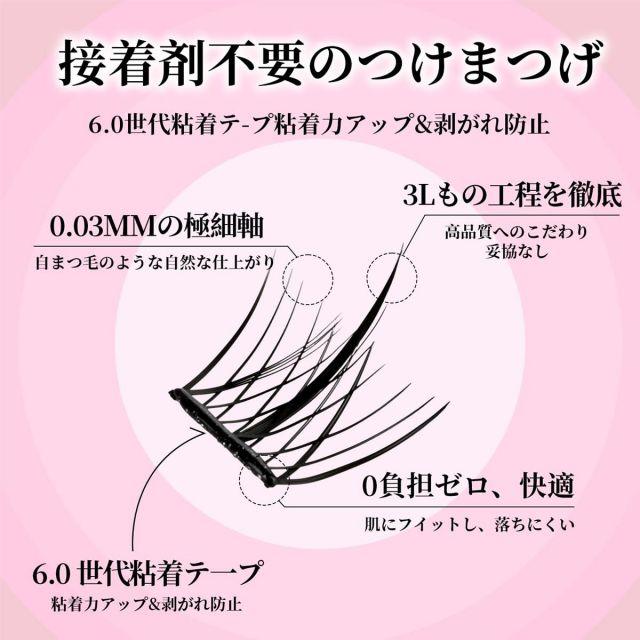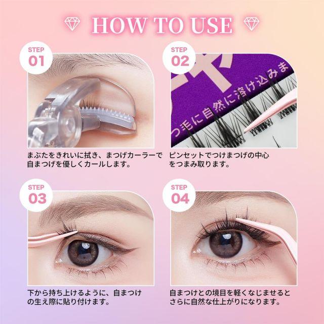 【羽のように軽く、目立たない快適さ】–透明な0.03mmのバンドを採用した当社のまつげクラスターは、極薄で軽量。自然なまつ毛エクステの生え際の質感を完璧に再現します。透明なベースが肌に溶け込み、至近距離でもクラスターが全く目立ちません。部分つけまつげのり不要です。