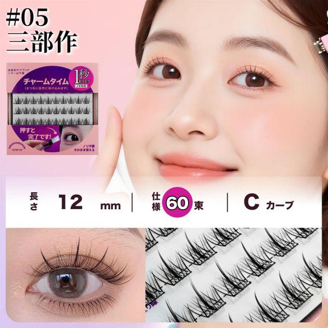 スタイル:三部作◆商品名:つけまつげのり不要DIYまつげエクステンション60本入り12mmミディアムレングス1秒マツエク部分つけまつげ接着剤不要の自己接着式、防水仕様、羽のように軽いクリアバンドふんわりとしたクラスターで目元を大きく見せるボリューム感