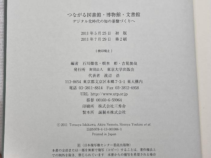 商品名:つながる図書館・博物館・文書館―デジタル化時代の知の基盤づくりへ 東京大学出版会 徹也, 石川