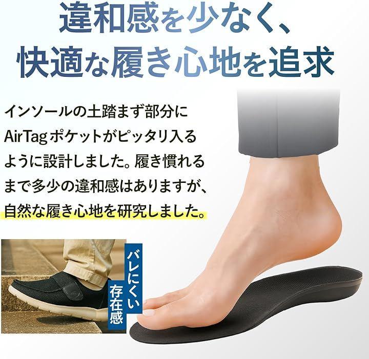 靴の中で目立たないように設計された専用ポケットに、お手持ちのAIRtagを収納できます。