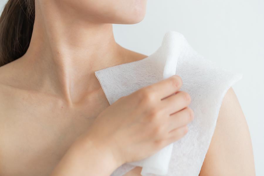 水になじむと柔らかく膨らみ、肌をこすらず汚れだけをやさしく落とします。