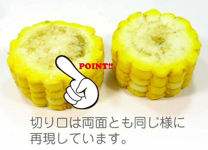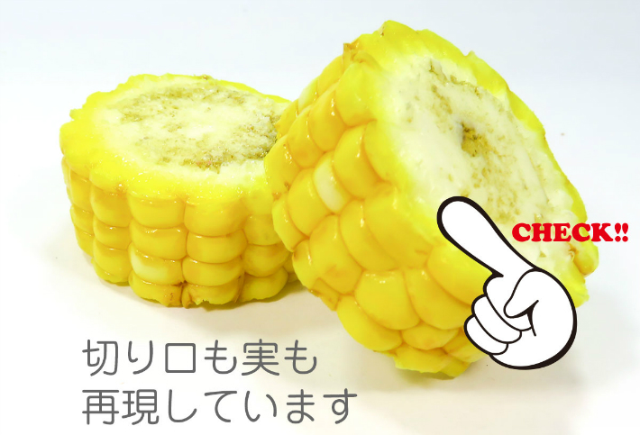 美味しそうなゆでとうもろこしをアクセサリーにしました。切り口は両側とも再現しています。