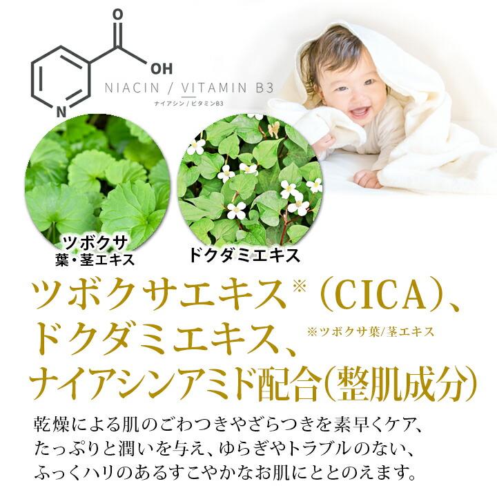 ※1 ツボクサ葉/茎エキス ※2 グリチルリチン酸2K ※3 加水分解ローヤルゼリータンパク すべて整肌成分お肌に優しい無添加(合成香料、着色料)。【こんな方におすすめ】肌荒れが気になる方。家族みんなで使えるスキンケアをお探しの方肌荒れ 手荒れ