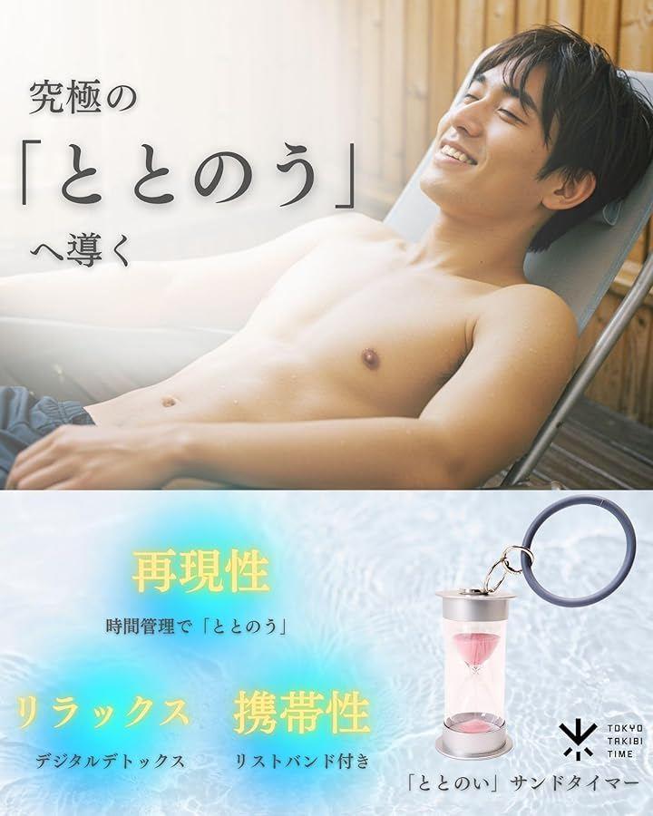 「時間管理で「ととのう」を再現する」ととのうを再現するために時間管理は重要です。サウナ>水風呂>外気浴のルーティーンを制することで、いつでもどんな施設でもととのうを再現できるようになります。ととのいサンドタイマーは「ととのう」を再現するために最適なアイテムです。