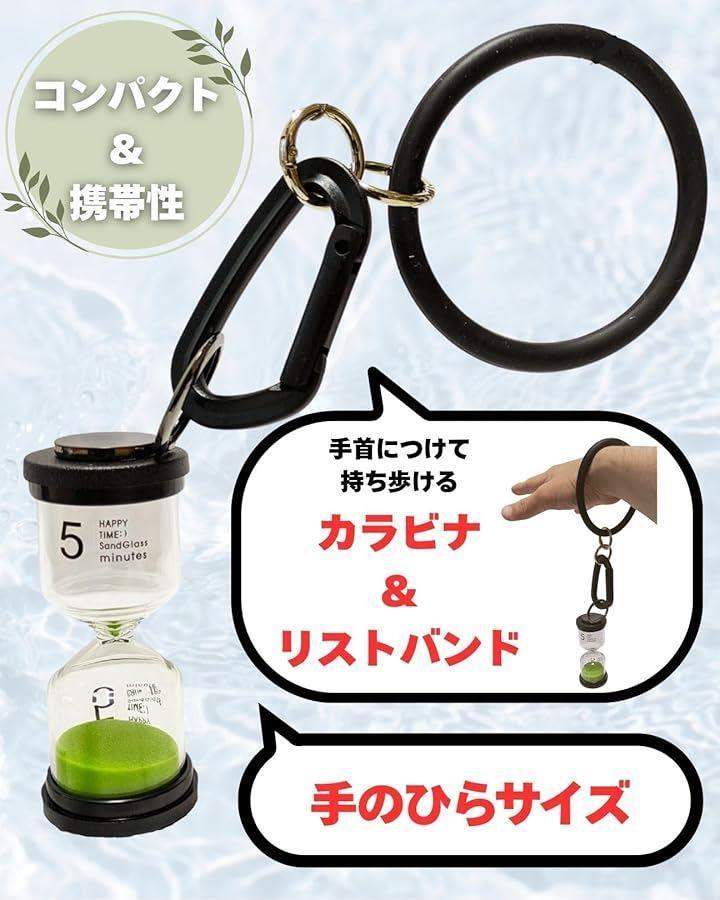 「カラビナ&リストバンド付き」サウナ内で砂時計を持ち運びやすいようにカラビナとリストバンドが付属されています。
