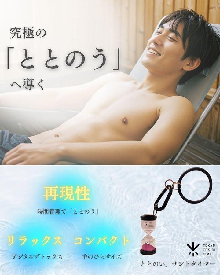 「時間管理で「ととのう」を再現する」ととのうを再現するために時間管理は重要です。サウナ>水風呂>外気浴のルーティーンを制することで、いつでもどんな施設でもととのうを再現できるようになります。ととのいサンドタイマーは「ととのう」を再現するために最適なアイテムです。