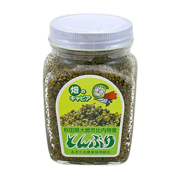 あきた北農業協同組合とんぶりは、アカザ科のホーキ草の実を加工したもので、その見た目から別名は「畑のキャビア」とよばれています。