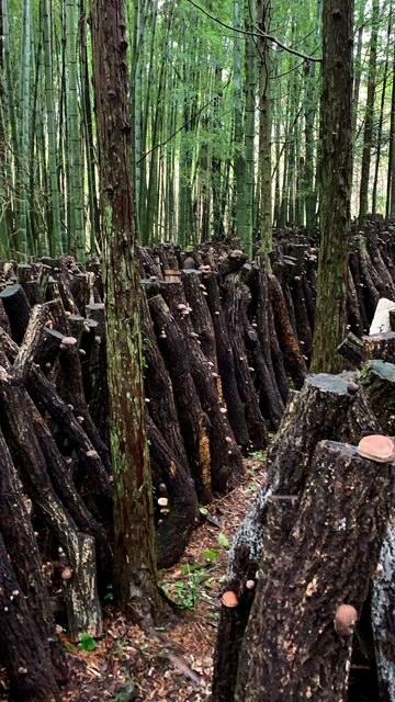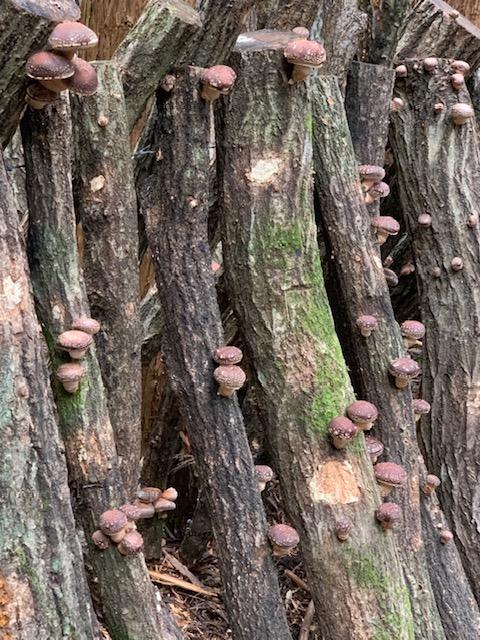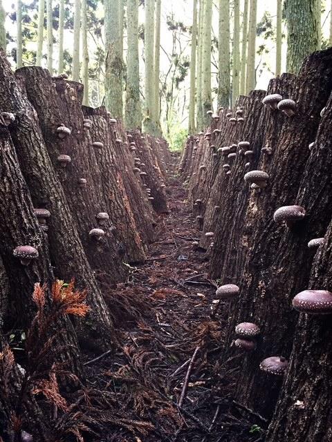 原木栽培(げんぼくさいばい)とは天然の木を用い木材腐朽菌のきのこを栽培する方法で、伐採し枯れた丸太に直接種菌を植え付ける方法です。丸太(原木)をそのまま使うことから原木栽培と言われています。