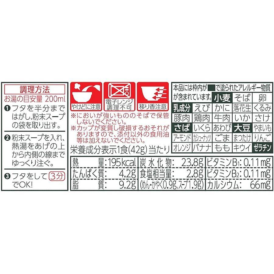 内容量:42g×12個原材料:油揚げめん(小麦粉、植物油脂、食塩、植物性たん白、大豆食物繊維)、かやく(味付油揚げ)、スープ(食塩、魚介エキス、醤油、魚肉練り製品、魚粉、昆布エキス、ねぎ、糖類、香辛料、昆布パウダー、魚介調味油、香味油)、加工でん粉、調味料(アミノ酸等)、リン酸塩(Na)、炭酸Ca、増粘多糖類、カラメル色素、乳化剤、香料、酸化防止剤(ビタミンE)、クチナシ色素、ベニコウジ色素、ビタミンB2、ビタミンB1、(原材料の一部に乳成分、さば、ゼラチンを含む)商品サイズ(高さ×奥行×幅):124mm×338mm×226mmパッケージ重量: 0.8 kg【重要】メーカーによる商品リニューアルに伴いパッケージ(内容量も含む)変更が行われた場合、新パッケージでお届け致します事ご了承願います。