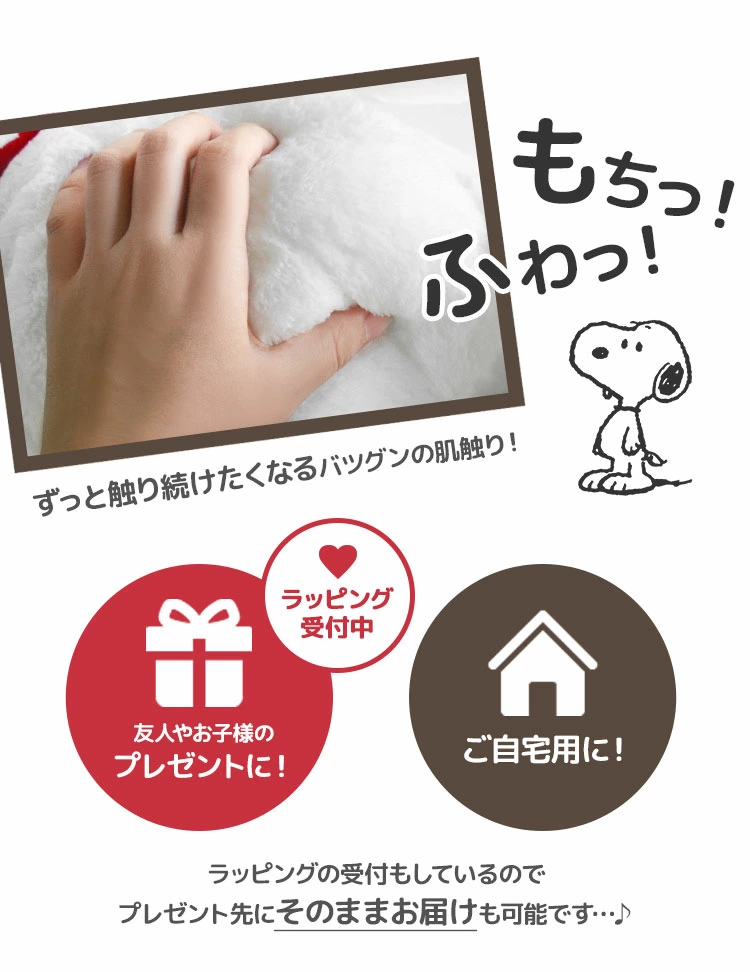 【ぬいぐるみ】思わずハグしたくなる!ふわふわな肌触りのスヌーピーのぬいぐるみが登場!大きすぎず、小さすぎない抱きしめるにはちょうどいいサイズ感です…♪寝るときのお供に…クッションと一緒にソファーに…あなたのお気に入りの場所に置いてあげて!