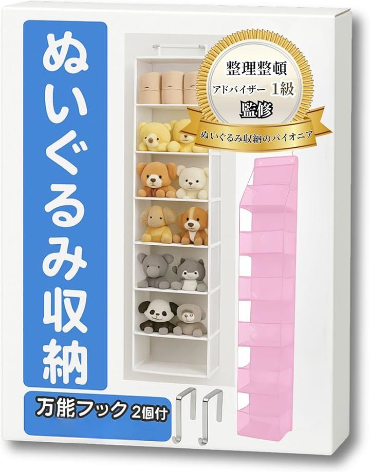「aamonoのぬいぐるみ収納」は、 ドアにフックで簡単にかけるだけ で、 ぬいぐるみをかわいく収納できる優れもの。 簡易梱包にて出荷します、ご了承ください。