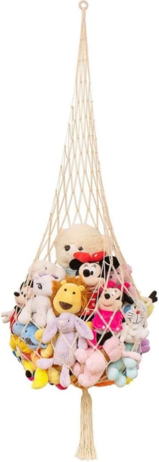 小さなぬいぐるみから少し大きめのものまで、さまざまなおもちゃを一か所にまとめて保管できます。