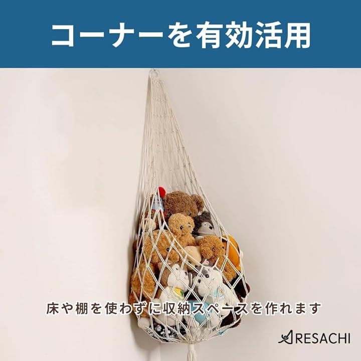 「コーナーを有効活用できる」お部屋の角に取り付けて使える収納ネットです。