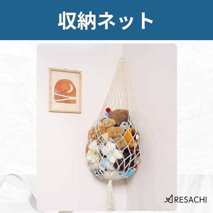「飾るように収納できる」ネットにぬいぐるみを入れることで、ディスプレイのように見せながら収納できます。