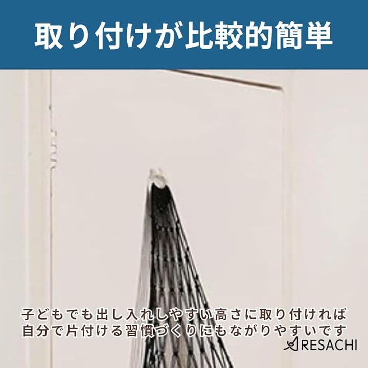 子どもでも出し入れしやすい高さに取り付ければ、自分で片付ける習慣づくりにもつながりやすくなります。