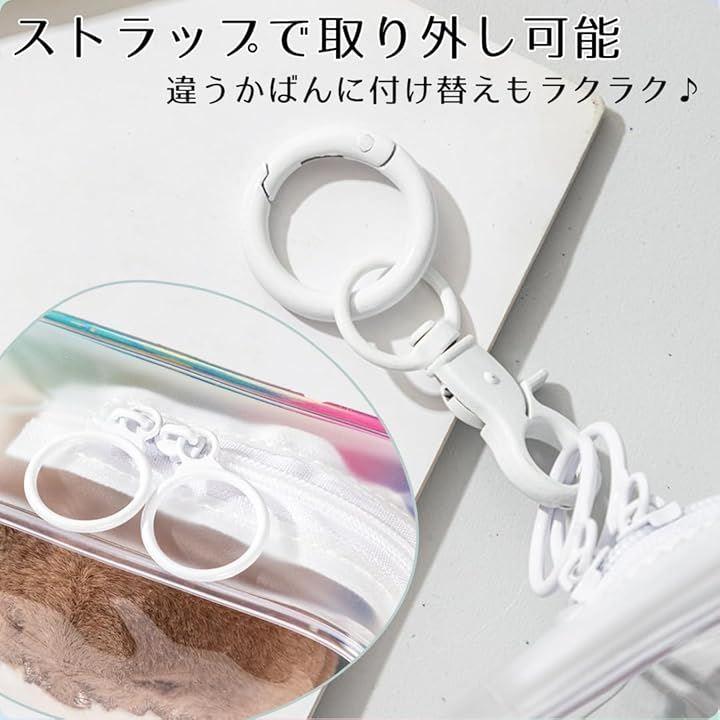 「ストラップで取り外し可能」取り付け、取り外し可能なストラップも付いているので、違うかばんに付け替えもラクラク。