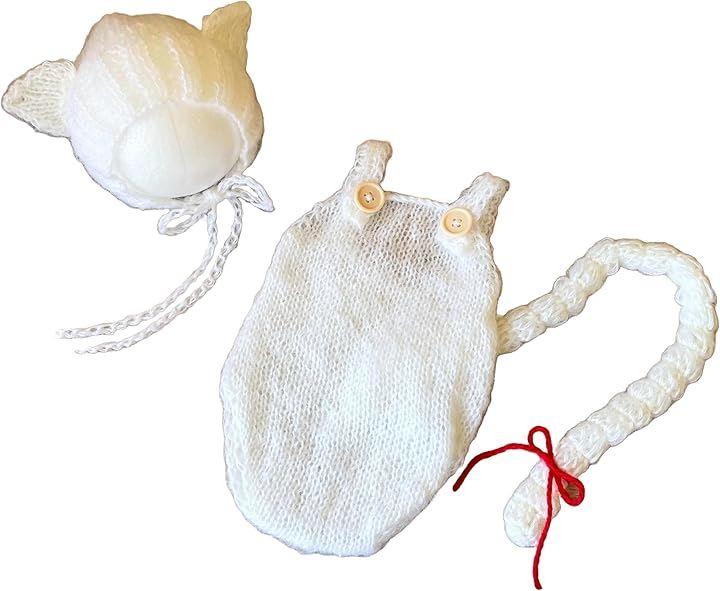 セット内容: 可愛い猫耳付きボンネットと尻尾付きオーバーオールの2点セット、新生児フォト撮影用コスチューム