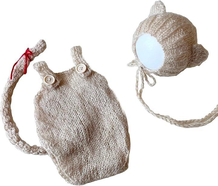 セット内容: 可愛い猫耳付きボンネットと尻尾付きオーバーオールの2点セット、新生児フォト撮影用コスチューム