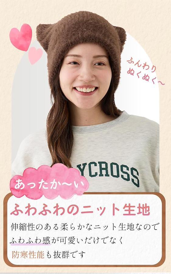 「ふわふわのニット生地」伸縮性のある柔らかなニット生地なのでふわふわ感が可愛いだけでなく防寒性能も抜群です。