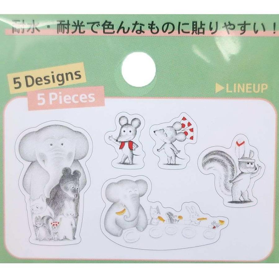 全国で展覧会も開催されている人気絵本[ねずみくんのチョッキ]のステーショナリーシリーズこちらはスマホケースやPC、スーツケース、自転車などなどいろんなものをデコレーションできる[ミニデココラージュシール]5柄各1枚がセットになっています耐水耐光仕様で屋外使用も出来ますかわいいステッカーいろいろあるのでお気に入りを揃えてくださいパッケージサイズ:約70x100mmシールサイズ:約50x70mm以内(2枚)/約40x40mm以内(3枚)
