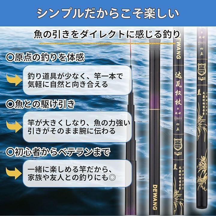 糸を巻き取るリールがないため軽量で扱いやすく、初心者や子供から上級者まで手軽に使用できます。