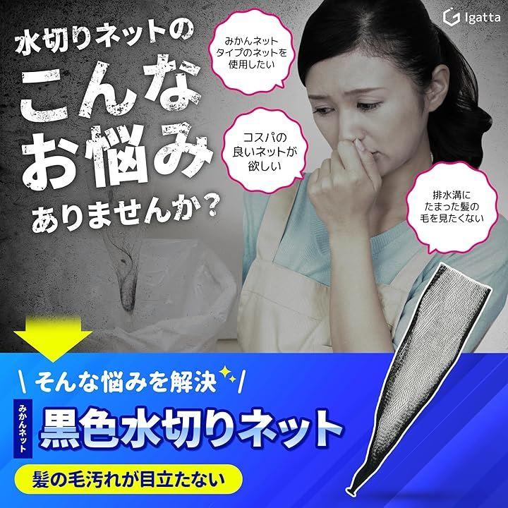 「水きりネットのこんなお悩みに」「お風呂場でみかんネットタイプのネットを使用したい」「コスパの良い水切りネットが欲しい」「排水溝にたまった髪の毛を見たくない」そんなお悩みをすべて解決する、黒色&みかんネットタイプの水きりネットです。