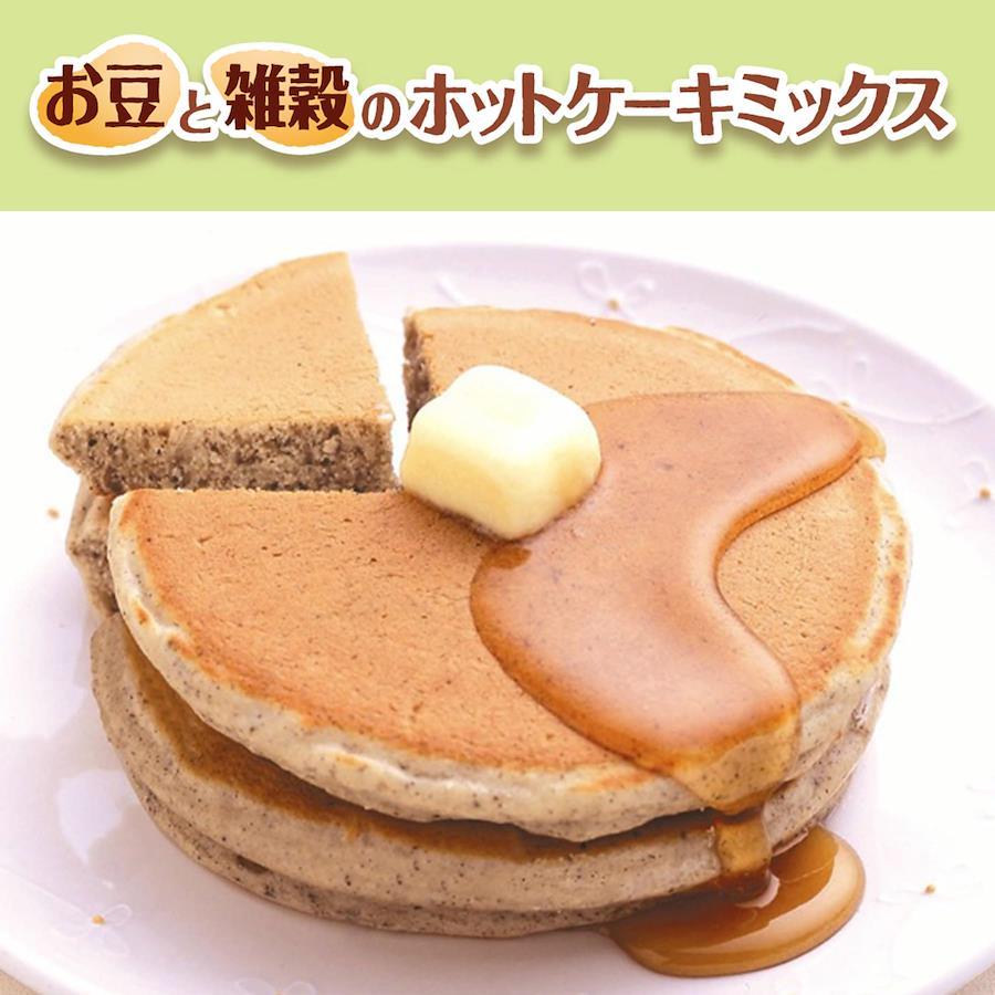 子供から大人まで食べられるおいしさ。2種類の「豆」(大豆・小豆)と、バランスのとれた5種類の「穀物」(大麦・黒ごま・もちきび・もちあわ・黒米)を粉にしたホットケーキミックスです。香ばしい焼き上がりともちもちとしたやわらかな食感、しっとりと広がる優しい甘さが魅力です。主原料の小麦粉と大麦粉は国内産を使用し、ベーキングパウダーはアルミニウム不使用のものを使用しております。