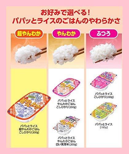 「やんわか」よりやわらかい。おいしさと使いやすさにこだわった「パパッとライス」をごはんの弾力はそのままに、さらにやわらかく炊きあげました。国産こしひかりを使用。やわらかいので食べやすく、1食ずつ分けられる便利な小分けパックなので食べたい分だけを切りはなして食べられます。常温保存ができ、電子レンジで温めるだけで手間ひまいらずにお召し上がりいただけます。もちろん湯煎でもご利用いただけます。
