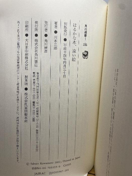 a02-251223002002015-000はるかな本、遠い絵 (角川選書 335) KADOKAWA/角川学芸出版 川本 三郎〈目次〉第一章 文学の現場から文学の「現場」作家の集中力文壇が輝いていたころ漱石のインク、荷風のくちなし高村光太郎とコカ・コーラ「涙よかわかずにあれ」オスカー・ワイルドと『横しぐれ』丸谷才一『七十句』藤沢周平の故郷で藤沢周平の「人生の秋」松本清張記念館開館に寄せて「頭がケイマトビ」の人第二章 日常の隣りで忘れられていた作家、加能作次郎野溝七生子のこと野口冨士男展を見る寡黙の作家、木山捷平イチョウの葉が落ちたころ──追悼、丸山眞男「猫」の猫井波律子の世界死の床の名句場末の真実小説という物の怪小説の考古学第三章 青春と時代「青春とは友情の季節である」貧乏で明るい芸術家の青春「穢い絵」の画家日本画にもこんな親しみやすい絵があった──奥村土牛の絵風船画伯の丸い世界はじめて知った画家、野口謙蔵古本屋主人、映画書を語る三島由紀夫の映画批評チャンバラと刀の美学加藤道夫資料を見る王様の玩具箱志賀直哉を尊敬した小津安二郎小津安二郎と「海ゆかば」「死者に申訳ない」──八月十五日のひとつの心情第四章 海の向こうから林芙美子の・・・9784047033351<%% SHIPPING %%>表紙に薄ヤケ、三方小口にヨレ、があります。本は良好な状態です。※注意事項※■商品・状態はコンディションガイドラインに基づき、判断・出品されております。■付録等の付属品がある商品の場合、記載されていない物は『付属なし』とご理解下さい。
