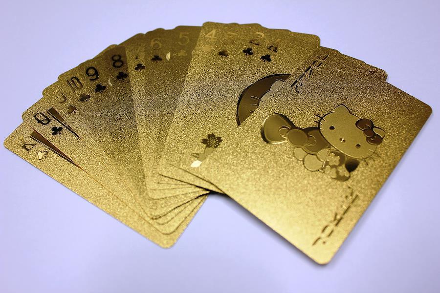 ハローキティの和柄ゴールドトランプです。アルミニウムメッキで覆っているので、丈夫。