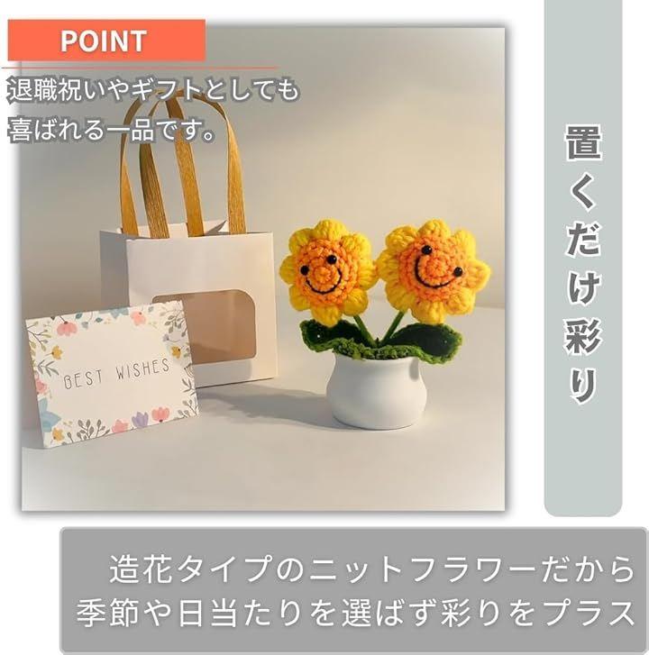 「置くだけ彩り」造花タイプのニットフラワーだから、季節や日当たりを選ばず飾りやすいのが魅力。