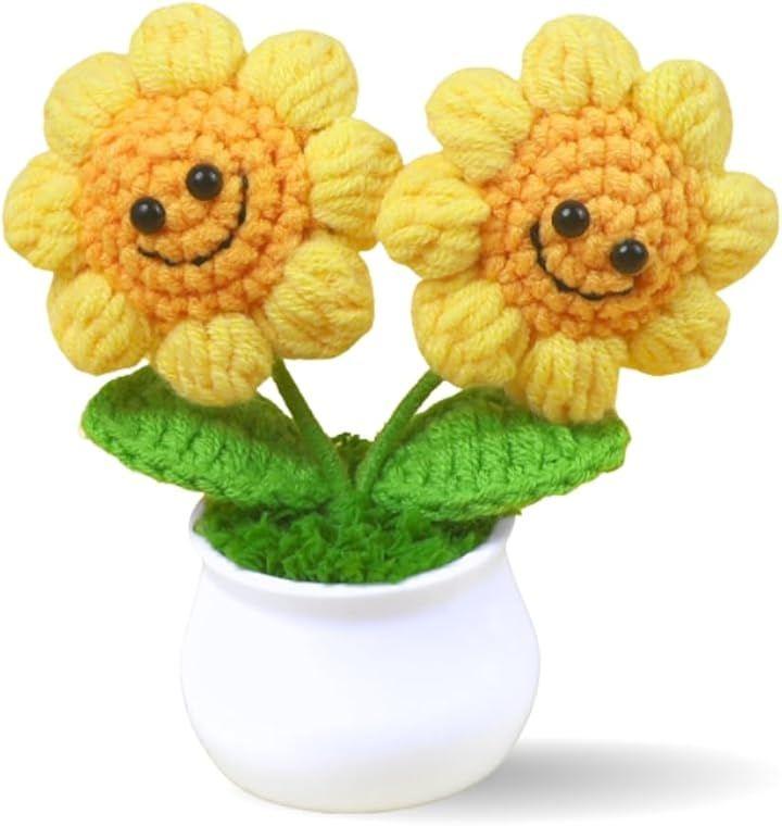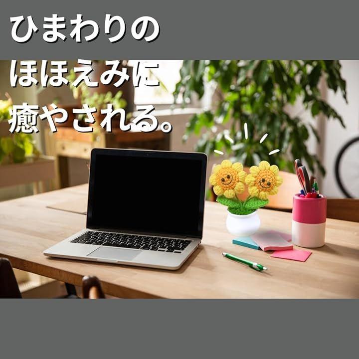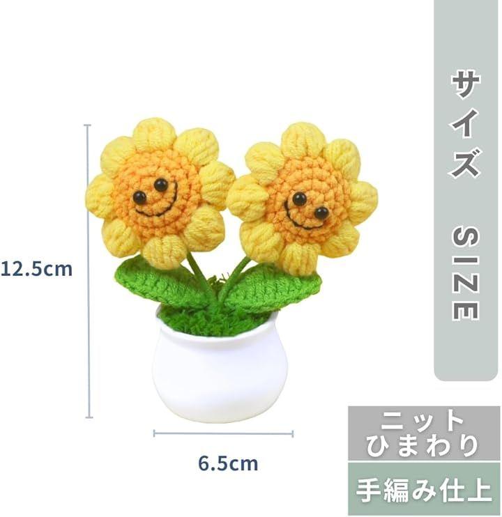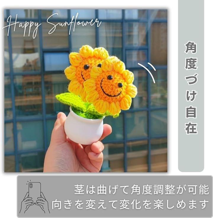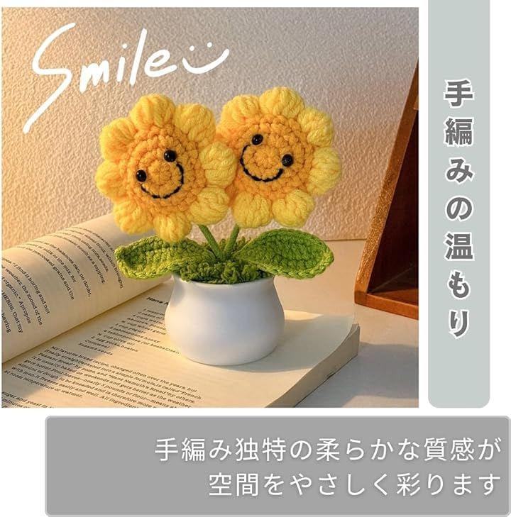 「手編みの温もり」毛糸で一つひとつ編み上げた笑顔のひまわり。