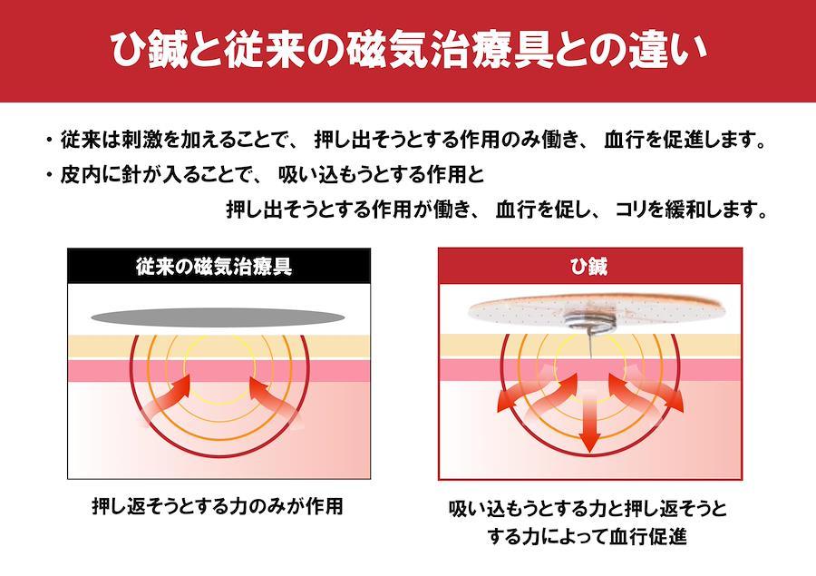 ひ鍼(皮内針)は肩こり、腰痛、ひざ痛、首痛、筋肉痛などに、ツボを気にせずお使いいただけます。 サイズ:(約)針1.3mm 材質:ステンレススチール メーカー(製造):日本薬興株式会社 医療用具認証番号:(63B輸)第1017号 届出番号:13B3X00499000001