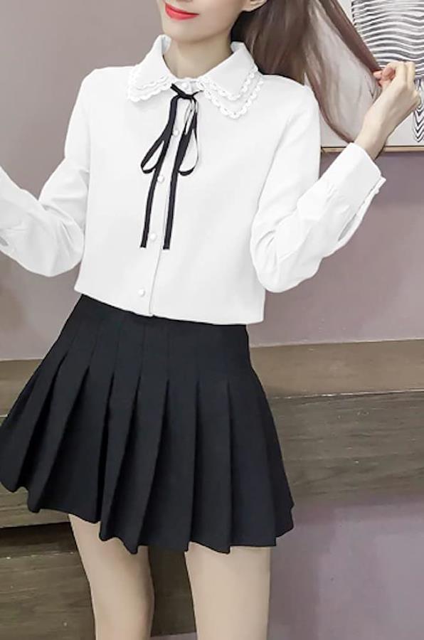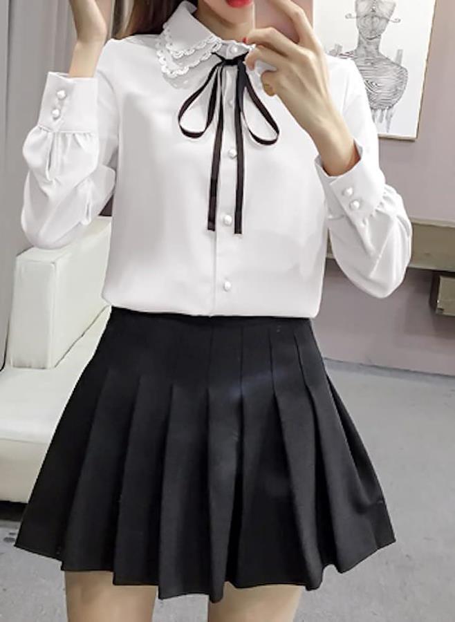 色: 2枚襟・ホワイト/ブラックリボン サイズ: S |