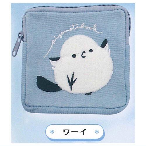 ぴよ手帖さんの描かれるシマエナガがもこもこのサガラ刺繍のポーチになってカプセルトイに新登場!