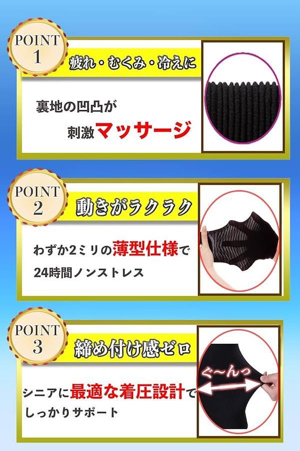 ・「 強すぎない加圧 」シルバー、シニア世代に優しい弱圧設計。