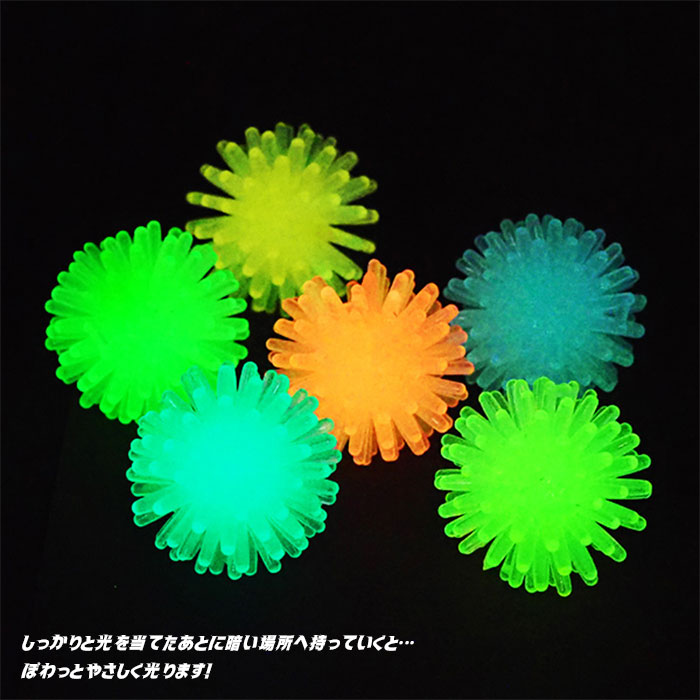 明るい場所に置いておくと、光を吸収して暗い所でぽわっと優しく光ります。