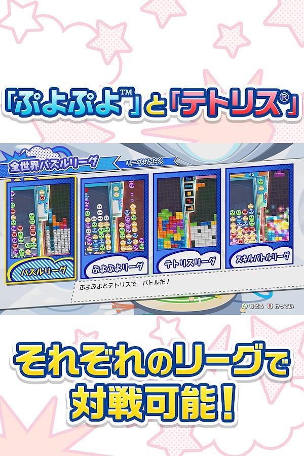 「ぷよぷよ」「テトリス」二大パズルゲームの頂上決戦、再び!国民的、世界的アクションパズルゲームの「ぷよぷよ」と「テトリス」の夢のコラボレーションタイトル「ぷよぷよテトリス」が、完全新作の『ぷよぷよテトリス2』となって新登場!前作に収録していたルールに加えて、新ルール、新キャラクター、新ストーリーなど多数の新要素を収録!初心者でも安心の「レッスン」など定番モードも搭載!オフラインでもオンラインでも1人~最大4人までプレイ可能、みんなで「ぷよぷよ」と「テトリス」を遊びつくそう!