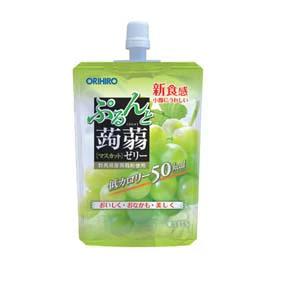 特徴蒟蒻粉配合で食感も楽しめる低カロリー(49kcal)で美味しいマスカット味のゼリーです。