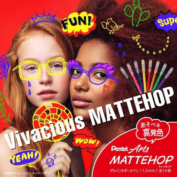 ・マットな質感でくっきり目立つ!あそべる高発色MATTEHOP(マットホップ)!MATTEHOP(マットホップ)は、イラストや文字をくっきり目立たせることができる新開発のマットカラーインキ搭載のボールペンです。これまでにない存在感バツグンの筆跡で、想像以上にインパクトのあるデコレーションを気軽に楽しむことができます。