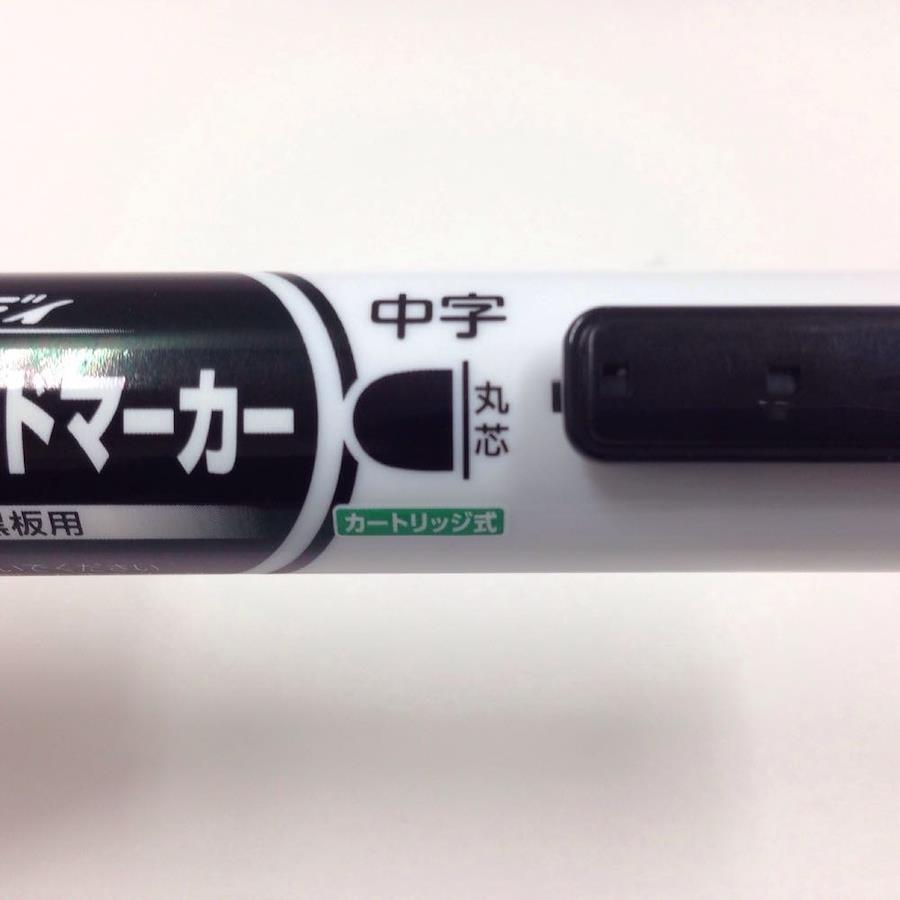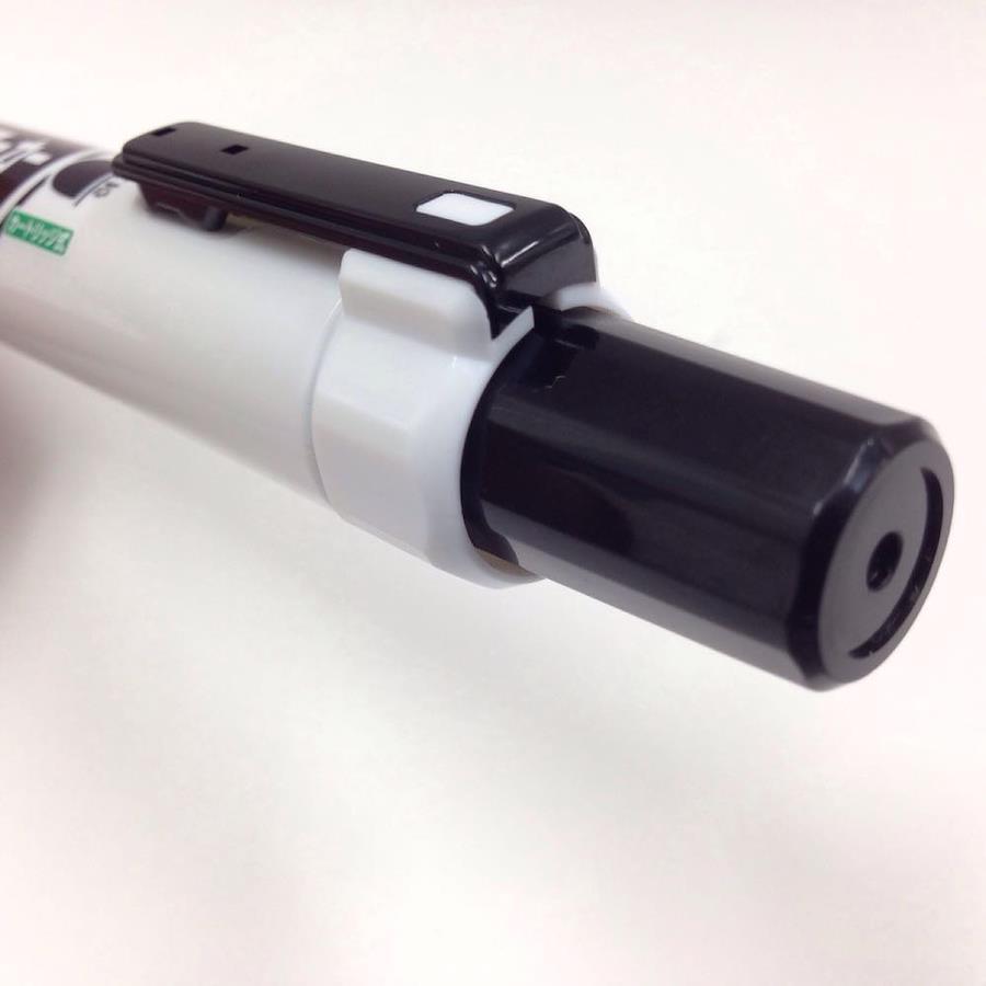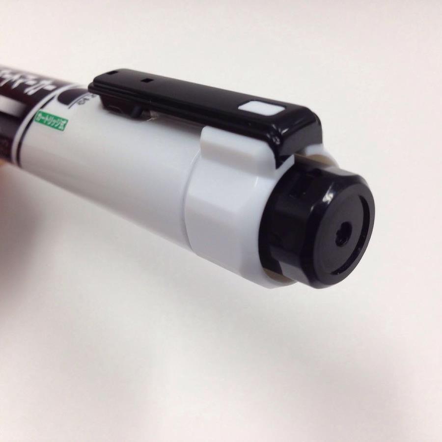 押すだけ!ノック式ホワイトボードマーカー。キャップがないから失くさない。