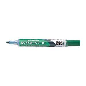 エコロジー商品「Yes」シリーズのホワイトボードマーカー。インキが薄くなったら数回ノックすれば、濃さが戻り、鮮やかに書けます。ペン先を押さずに後部をプッシュする方式ですので、ペン先を痛めず、ボテもありません。小さめの文字書きに適した、丸芯細字タイプ。●線幅:1.3mm●丸芯・細字●色:緑●材質:キャップ・前軸=PP、ノック部=POM