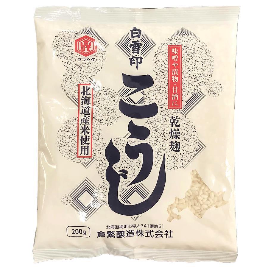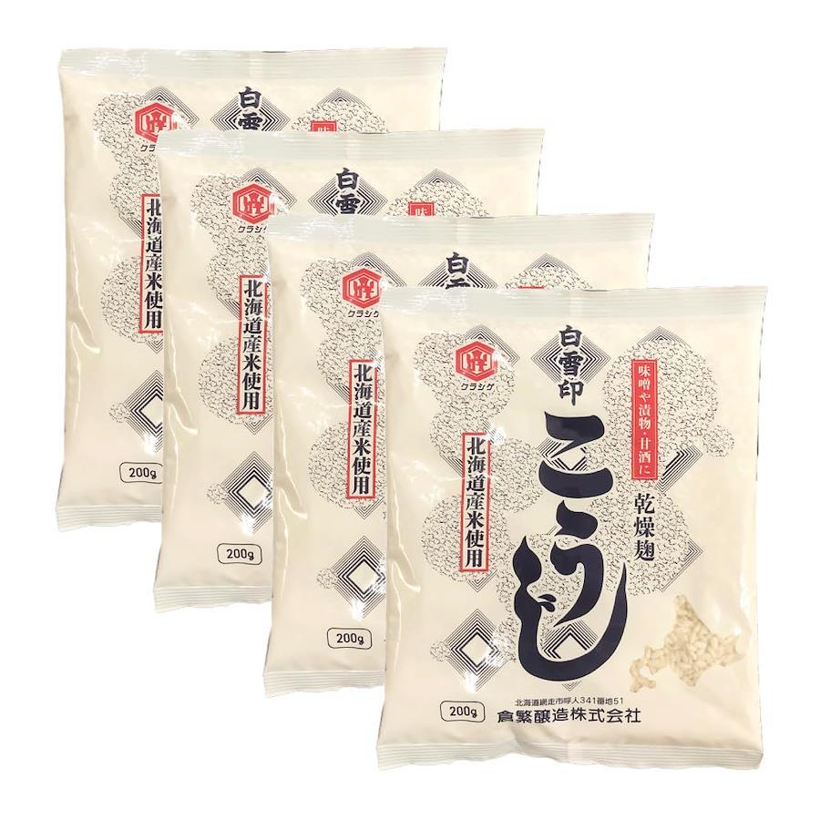 名称:米こうじ (乾燥こうじ)内容量:元詰200g×4袋 (※乾燥麹ですが若干量の水分を含んでおり、蒸発により容量が減少する場合があります。)★レシピ★甘酒の作り方 ~材料~ こうじ200g、もち米1合(※もち米の代わりに普通のご飯もご利用できます) ~作り方~1.一晩水に漬けておいたもち米を多めの水加減でお粥状に柔らかく炊飯して下さい。(普通のご飯でも代用できますが、甘みは少ないかもしれません。)2.炊いたもち米を70℃以下に冷ましてから、こうじを入れ均等に混ぜ合わせます。3.60℃前後をキープできる炊飯ジャーや容器に移し、保温します。(こうじの酵素は70℃を超えると壊れてしまうため、保温温度には注意して下さい。)4.8時間程度保温し、ちょうど良い味になったら醗酵による味の変化を防ぐため火を入れ、80℃以上の温度で焦げないよう撹拌しながら軽く煮立たせます。保存する場合は冷蔵または冷凍し、早めに食べきって下さい。しょうゆ麹の作り方 ~材料~ こうじ200g、しょうゆ200cc ~作り方~1.タッパー等の容器にこうじを入れ、しょうゆを加えます。2.よく掻き混ぜたあと蓋をして、そのまま常温で1週間程度醗酵させます。1日に1回、スプーンなどでムラがないよう掻き混ぜて下さい。3.発酵が進んでとろみが出てきたら出来上がり。その後は冷蔵庫で保存し、3ヶ月を目安に使い切るようにして下さい。【重要】メーカーによる商品リニューアルに伴いパッケージ(内容量も含む)変更が行われた場合、新パッケージでお届け致します事ご了承願います。