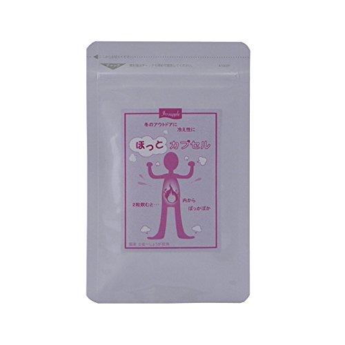 効果効能については個人差があります。 合わない場合は、利用を中止し、医師に相談してください。国産しょうが使用 ぽっかぽか成分26倍! (サーフタブレットHOT比) 寒いのが苦手な方、じっとしててもぽっかぽかでいたい方におすすめです。 「オフィスは、足元からジンジン冷えてツラい」という方、「身体を動かさないから、凄く寒いけどやめられない」とお悩みの釣りやバイク、スポーツ観戦などの趣味をお持ちの方。じっと座っているだけでも身体の芯から手足の末端までぽっかぽかになる『ほっとカプセル』をお試しください。たった2粒飲むだけで植物パワーでじんわり内側からあたたまってきます。 商品サイズ (幅×奥行×高さ) :100×15×160 原産国:日本 内容量:19.38g(1粒323mg×60粒)30日分 カロリー:2粒0.65gあたり 2.38Kcal