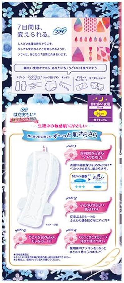 ソフィ はだおもい 極うすスリム 特に多い夜用 360 羽つき 36cm 16枚入x2個セット(合計32枚)おまけ 特製ティッシュ付