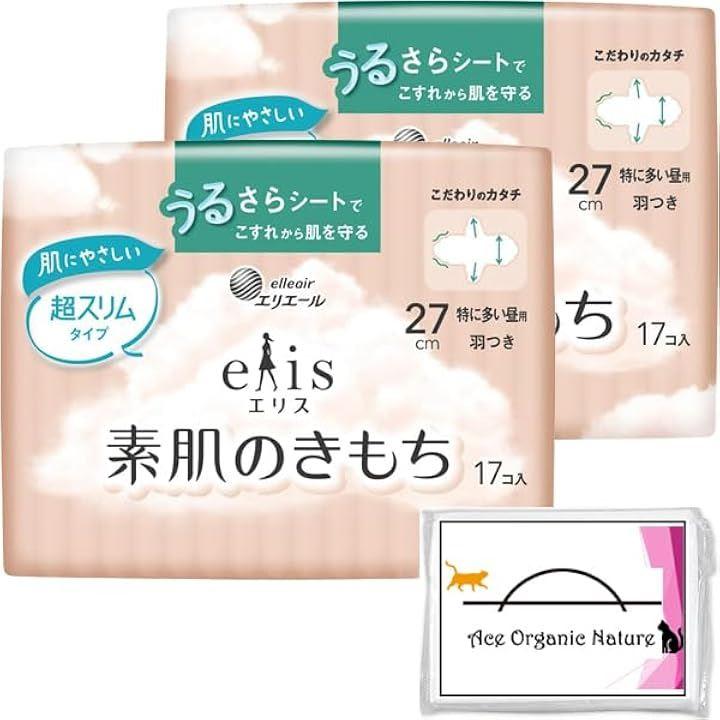 ・内容量 34枚(17枚x2個)・エリス 素肌のきもち 超スリム 特に多い昼用 270 羽つき 27cm 17枚x2個セット (合計34個) 特製ティッシュ付