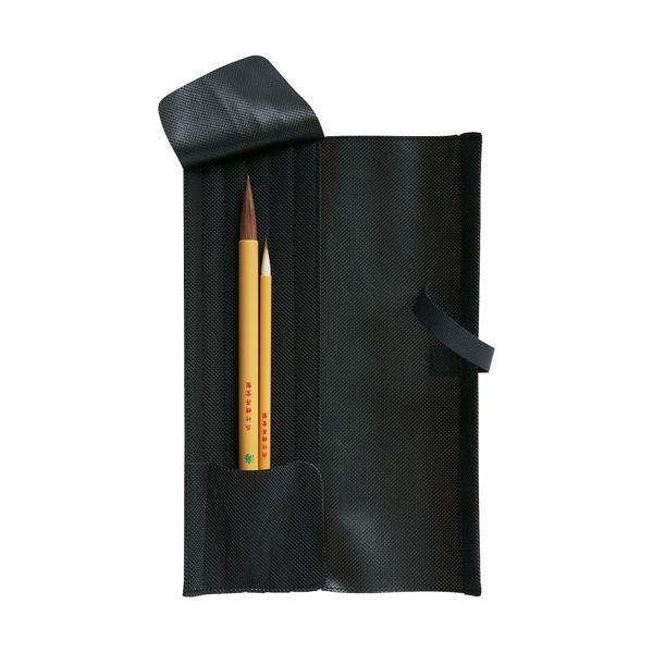 面ファスナーのワンタッチ筆巻き。通気性が良く、筆が抜け落ちないポケット付き。